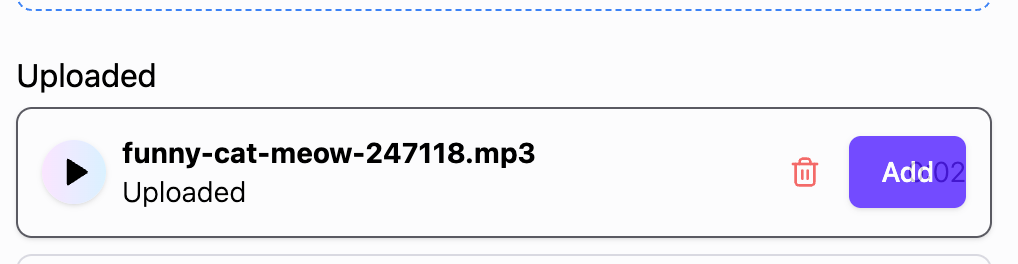 The file will appear underneath “Uploaded”, click the “Add” button to add the audio to the timeline.